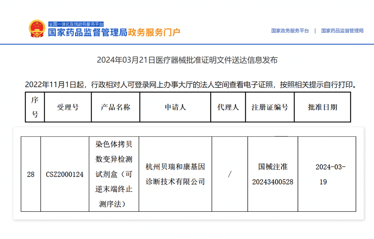 貝瑞基因CNV-seq檢測試劑盒獲國家藥品監(jiān)督管理局(NMPA)批準上市!
